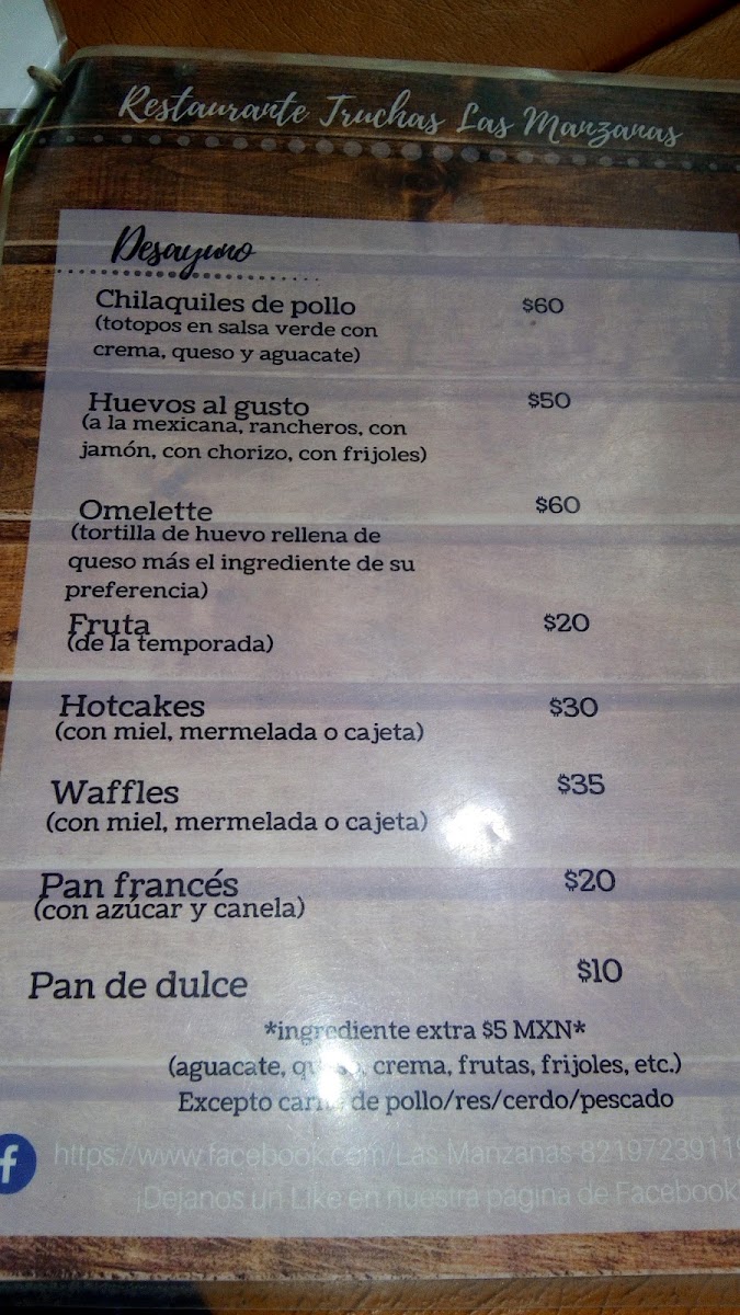 The menu features an impressive variety of dishes, including expertly prepared truchas in various styles, catering to diverse palates. Diners like Marco Antonio Del Angel appreciate the swift service, while others, like Jorge Luis Torres Hernandez, highlight the inviting ambiance and flavorful café de olla. With ample camping areas and charming cabins available, it’s an ideal spot to unwind after a hearty meal. If you’re seeking a peaceful dining experience with mouthwatering food, Restaurante Las Manzanas is certainly worth a visit!